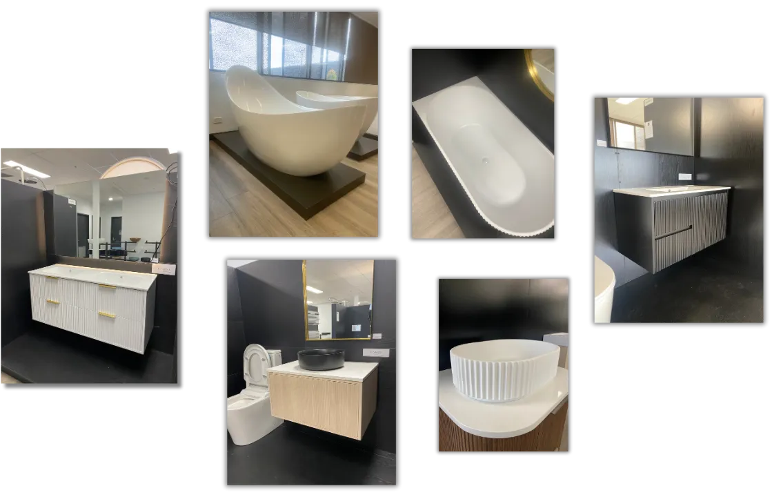 Explore our full range of baths, vanities, and tapware in person — compare finishes and styles side by side.